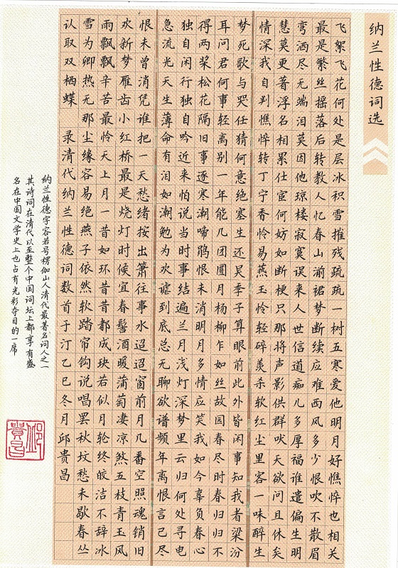 硬笔作品《纳兰性德词选》