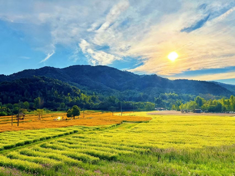 叠翠田畴映晚辉