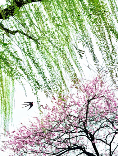 归燕剪云穿绿影,