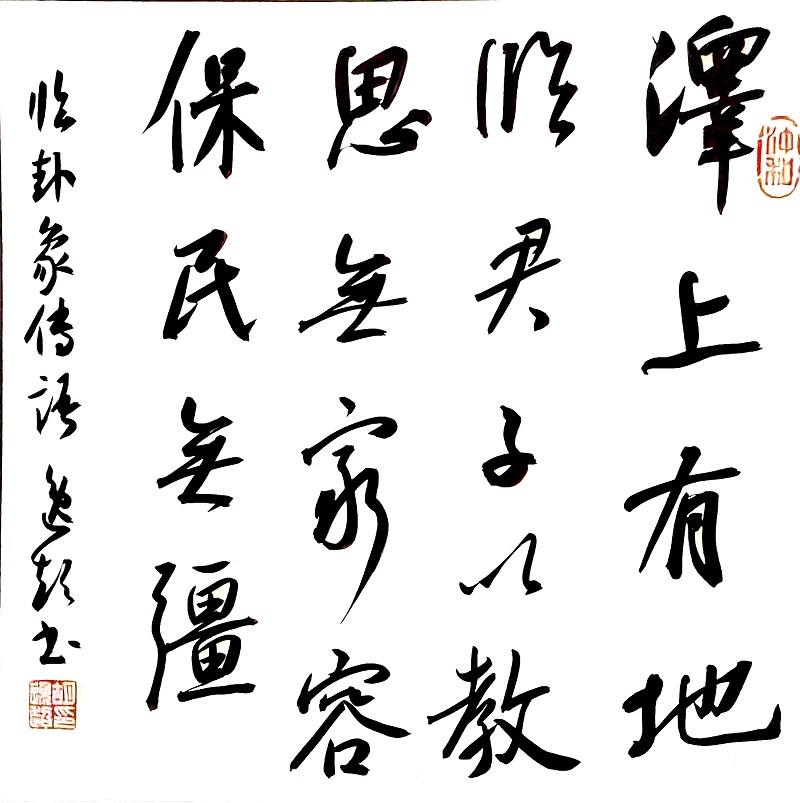 泽上有地,临。君子以教思无穷,容保民无疆。