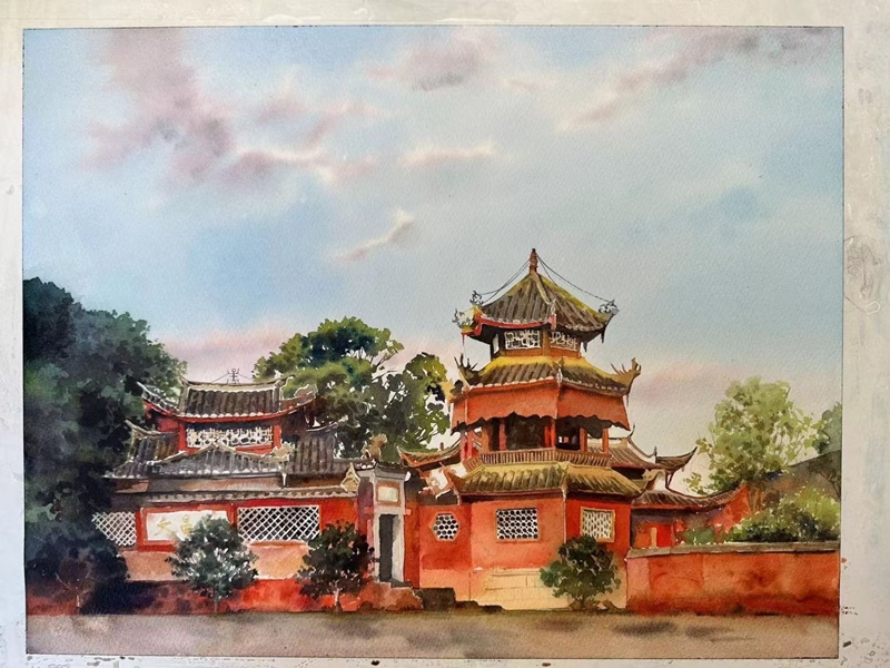 沙县小景红色旧址-文昌宫(水粉画作品)