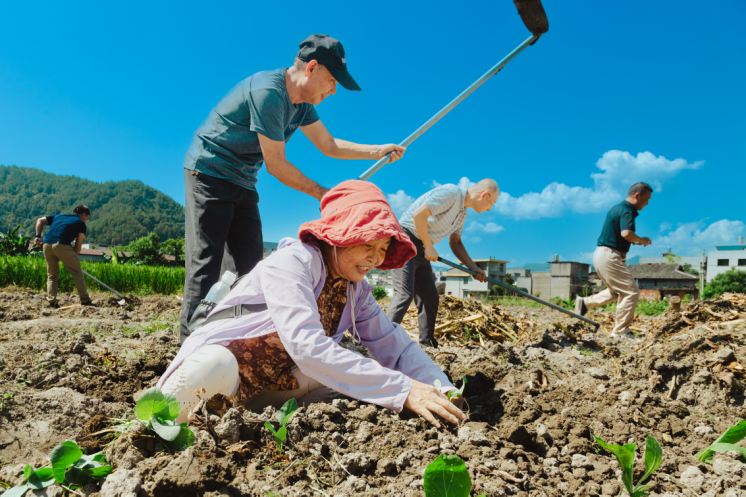 为深入贯彻习近平总书记关于国家粮食安全的重要论述,近日,福州市审计局组织审计干部职工14人赴闽清县坂东镇文定村开展“我在乡间有亩田”志愿活动,认筹认种抛荒地1亩,以出资委托代耕、志愿劳动等方式参与粮食生产,以实际行动助力粮食安全和乡村振兴。图为志愿者在田间栽植蔬菜苗。(福州市审计局 供稿)